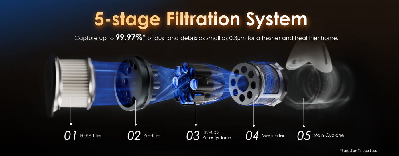 A powerful 5-in-1 multi-function cleaner designed to tackle all your floor cleaning needs. With 180° Lay-flat Design, it effortlessly reaches under furniture and tight spaces, ensuring no dust or debris is left behind. Featuring DualBlock Anti-Tangle Technology, it prevents hair from clogging the brush, while the FlashDry Self-Cleaning System keeps the machine fresh and ready for the next use. Equipped with Tineco PureCyclone Technology, it delivers strong, fade-free suction power, and its 5-stage filtration system ensures a cleaner, healthier home. Whether you're vacuuming or washing floors, the long-lasting runtime provides up to 65 minutes of uninterrupted cleaning.