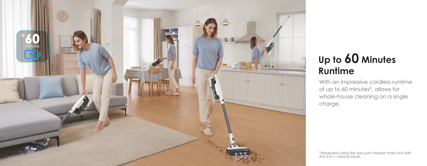 With an impressive cordless runtime of up to 60 minutes*, allows for whole-house cleaning on a single charge.
