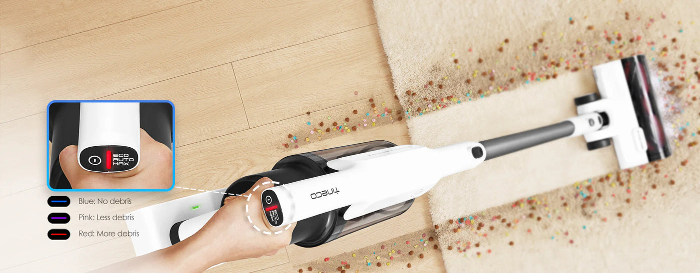 Detects hidden dust and debris and auto-adjusts suction power in real-time, for up to longer runtime and complete cleaning confidence.