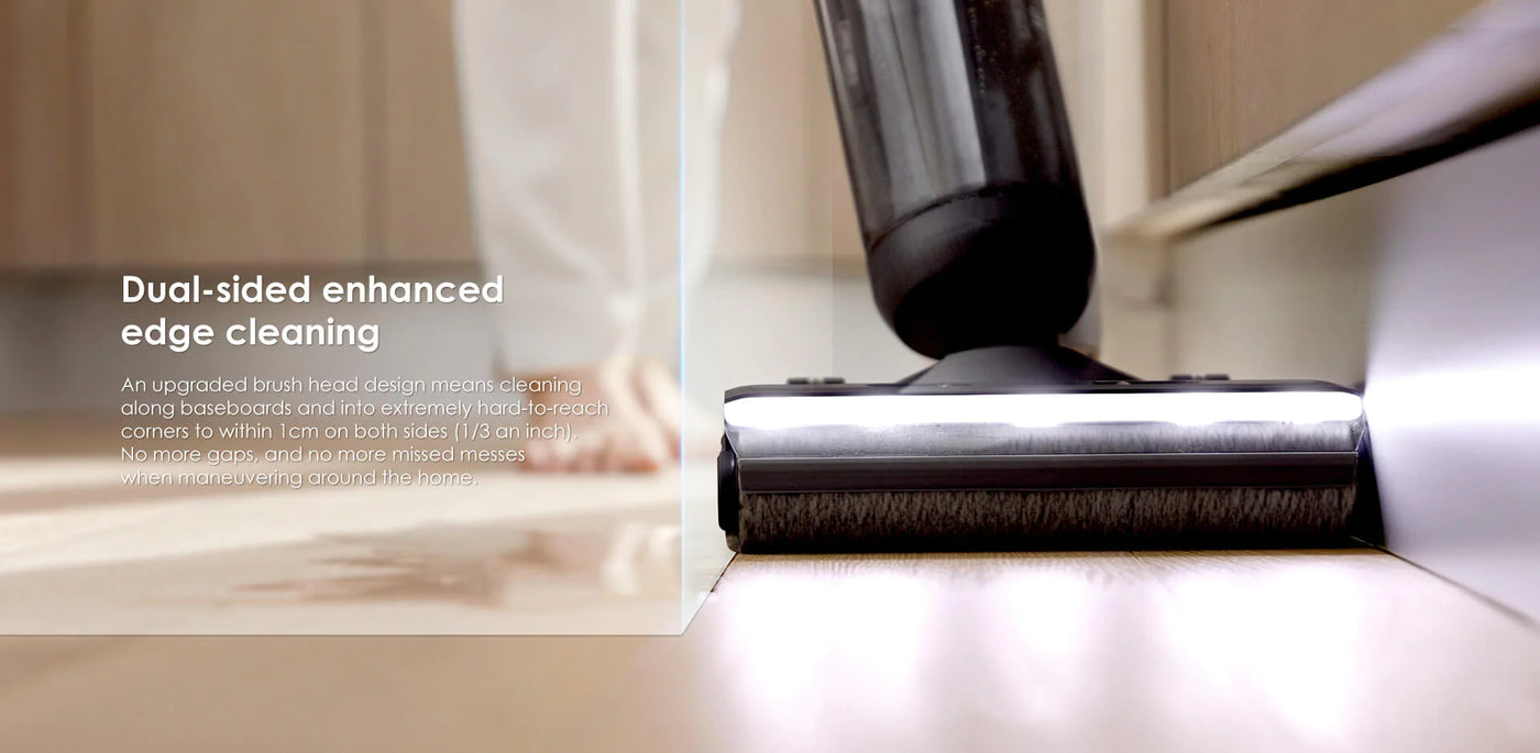With the upgraded dual-edged cleaning brush roller, cleans to within 0.4 inch on both sides, along baseboards and into hard-to-reach corners.