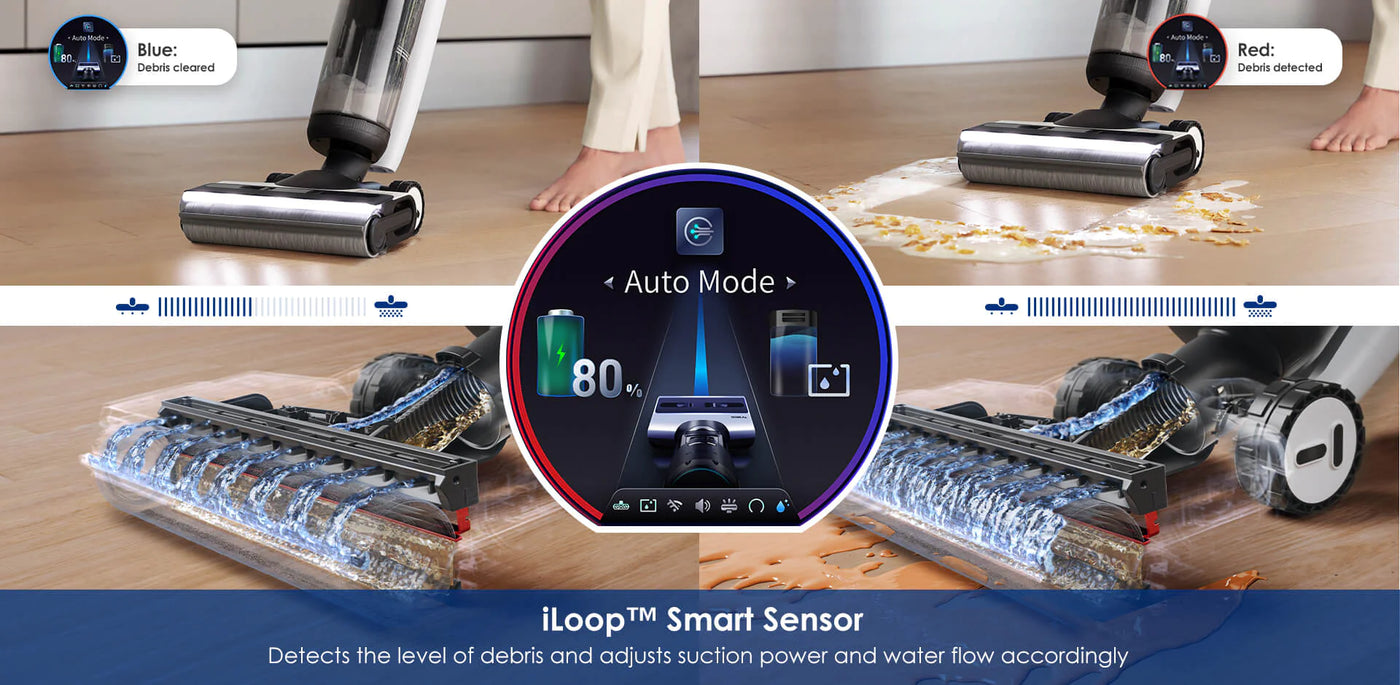 - Auto Mode ā utilises the intelligent iLoop Sensor to detect messes and automatically adjust suction power and water flow, providing the optimal clean. The best option for your regular cleaning.